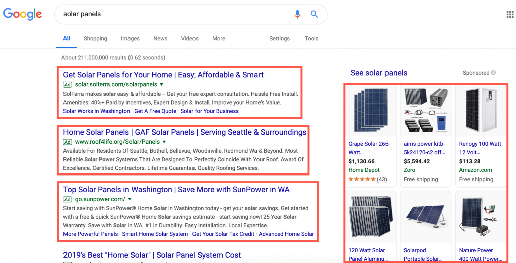 With a PPC campaign, you will pay for each click on your ad. Google will tell you how much you can expect to pay per keyword per click, and the range will depend on the industry and specificity of your keywords. Since it’s based on a bidding system, a higher bid means a better chance of your ad being chosen. However, a quality ad will be favored over a high bid, so by creating good ads, we can drive down the price of each click.